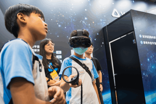 HTC表示,「VIVERSE for Business教育元宇宙」提供各式沉浸式數位教室,讓學生可透過多種裝置如XR頭顯、電腦或平板等設備進入課堂,並在虛擬教室中進行3D實物展示、主題演說及分組討論,享受如臨現場的互動學習氛圍。此外,展會中還展示了虛擬天文教室、理化實驗室及防災實驗室等多樣自然科學場景,為K-12教育提供完整的沉浸式學習解決方案。