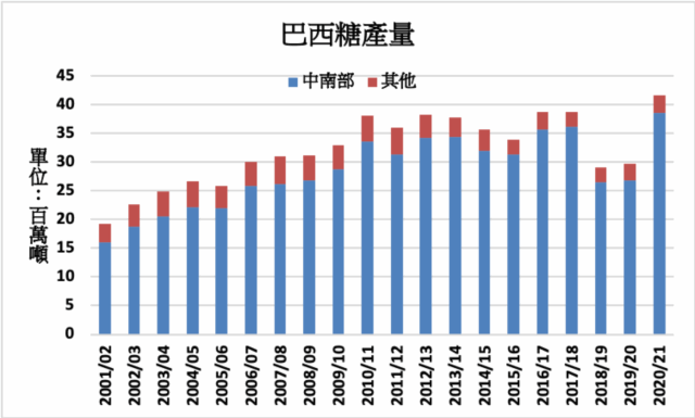 截至11月1日,巴西糖產量較去年同期的3,640萬噸減少14.2%至3,120萬噸,乙醇總產量250.9億公升,其中作為獨立燃料的水合乙醇產量年減19%,添加至汽油當中的無水乙醇產量年增17%。截至11月1日,巴西玉米乙醇產量19.4億公升,佔乙醇總產量的7.7%比重。2021/22年度,巴西玉米乙醇產量預估將佔到總產量的11%。