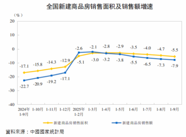 陸前9月新建商品房銷售額年減7.9%、降幅續擴大