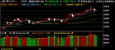 中國滬深兩市三大指數今(16)日開盤漲跌互見且隨後走勢有所分歧,在機器人概念股走高、短劇遊戲概念拉升、AI概念股持續強勢,以及貴金屬及航運股走勢偏軟,主要權值股如中國人壽/工商銀行下挫的交互影響下,滬指在低開後雖一度翻紅,隨後仍再度下挫翻黑,臨近尾盤回升至平盤附近,深證成指開高後震盪轉趨於平盤附近調整,創業板指則是震盪走揚,惟於午後逐步下滑至翻黑。滬指終場3500點再度失而復得、收跌0.03%(附圖),連續二日走跌。