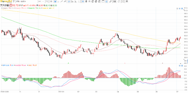 MoneyDJ iQuote報價顯示,美元指數7日終場上漲0.18%、收91.72點;盤中最高上揚至92.85點、創4月5日以來盤中新高。