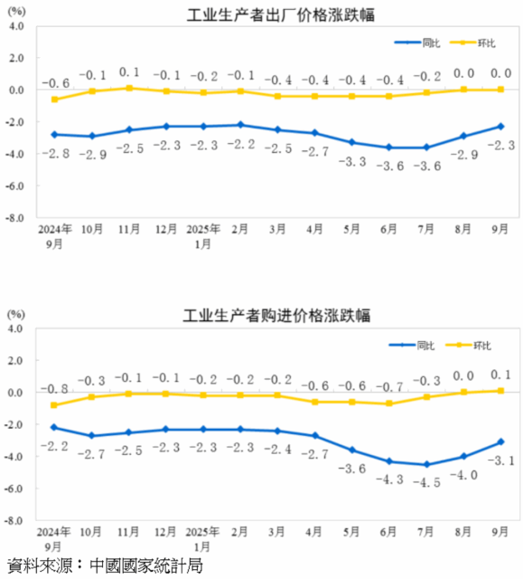 陸9月PPI年減2.3%,降幅續收斂、符合預期