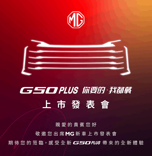 MoneyDJ新聞 2025-07-29 11:29:04 記者 鄭盈芷 報導 中華車(2204)旗下MG品牌將於8月20日舉行全新國產7人座的G50 PLUS新車發表會,是中華車MG繼HS、ZS後,最新款的國產車,也符合去年新上路的國產車自製率規範;MG車款以「超規滿配」、具競爭力的價格打響名號,此次推出7人座的G50 PLUS,將提供台灣車市國產中大型MPV新選擇。