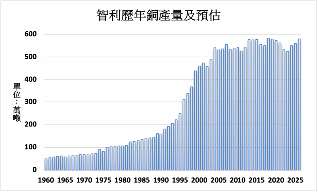 智利銅委會報告預估智利2025與2026年銅產量將各成長3%,分別達到570萬噸與590萬噸,反映出在多年停滯之後的逐步復甦。報告預估2025年全球銅需求將達2,700萬公噸,2026年則增至2,780萬公噸,年增率分別為2.3%與2.8%。報告預估,2025年銅市將出現10.9萬公噸的供需缺口,2026年則預計為過剩1.9萬公噸。