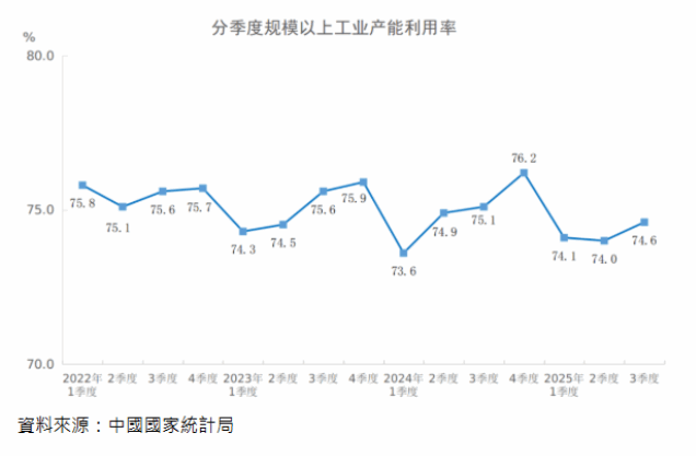 陸Q3工業產能利用率74.6%,季增0.6個百分點