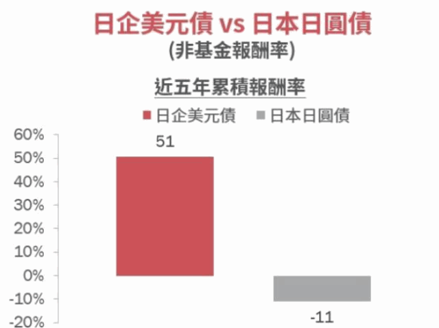圖文僅供參考,本公司無意藉此作任何徵求或推薦。過去績效不代表未來收益之保證。投資人申購本基金係持有基金受益憑證,而非本文提及之投資資產或標的。以上看法及配置可能隨市場變動,本公司不另行通知,相關投資策略詳見公開說明書。日企美元債採彭博全球日本外幣債券指數,日本日圓債採彭博綜合公司債券指數。以上皆非本基金報酬參考指標。