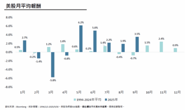 美股尚有「9月魔咒」的說法,原因是統計過往數據,9月通常表現疲弱,惟今年9月股市延續8月上漲動能,美股再創新高並締造15年來最佳9月表現,帶動全球股市上漲1。展望後市,第四季通常為全年表現最佳季度2,季節性交易利多有望助攻全球股市表現,另外國泰投顧認為2大關鍵題材可望助攻第四季全球股市表現,包括(1)美國聯準會重啟降息全球投資機會;(2)AI強勁需求帶動企業投資成長。