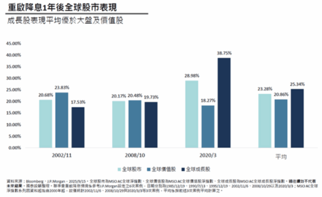 1資料來源:Bloomberg,統計期間:1994/1/1-2025/9/30。美股為標普500指數、全球股市為MSCI AC全球淨指數。國泰投顧整理。過往績效不代表未來結果。2資料來源:Bloomberg,統計期間:2001/1/1-2024/12/31,全球股市為MSCI AC全球淨指數。國泰投顧整理。過往績效不代表未來結果。3資料來源:Bloomberg,截至2025/9/30。國泰投顧整理。過往績效不代表未來結果。4資料來源:Bloomberg、J.P.Morgan,2025/9/15。全球股市為MSCI AC全球淨指數、全球價值股為MSCI AC全球價值股淨指數、全球成長股為MSCI AC全球成長股淨指數。過往績效不代表未來結果。國泰投顧整理。聯準會重啟降息情境係參考J.P.Morgan設定之6次案例,日期分別為1985/12/19、1990/7/13、1995/12/19、2002/11/6、2008/10/29以及2020/3/3;MSCI AC全球淨指數系列因資料起始自2000/12/29,故僅統計2002/11/6、2008/10/29與2020/3/3等3次案例,平均係採前述3次案例平均計算之。5資料來源:Bloomberg、J.P.Morgan,2025/9/15。新興市場為MSCI新興市場指數。過往績效不代表未來結果。國泰投顧整理。聯準會重啟降息情境係參考J.P.Morgan設定之6次案例,日期分別為1985/12/19、1990/7/13、1995/12/19、2002/11/6、2008/10/29以及2020/3/3。6資料來源:Citi,2025/9/30。國泰投顧整理。7資料來源:Citi,2025/9/30。國泰投顧整理。8資料來源:Citi,2025/9/30。國泰投顧整理。投資人申購本基金係持有基金受益憑證,而非本文提及之投資資產或標的。本文提及個股僅為說明之用,不代表本基⾦之必然持股,亦不代表任何⾦融商品之推介或建議。9資料來源:J.P.Morgan,2025/9/4。國泰投顧整理。10資料來源:Bloomberg,2025/3/24。國泰投顧整理。11資料來源:Morgan Stanley,2025/7/27。國泰投顧整理。12資料來源:Morgan Stanley,2025/4/29。國泰投顧整理。13資料來源:Bloomberg,統計區間:2001/1/1-2024/12/31,全球股市為MSCI AC全球淨指數。國泰投顧整理。過往績效不代表未來結果。14資料來源:MSIM、國泰投顧,截至2025/9/30。國泰投顧整理。過往績效不代表未來結果。15資料來源:Morningstar,截至2025/9/30。同類型基金為晨星分類之全球大型增長型基金。本基金以A級別美元計價。國泰投顧整理。過往績效不代表未來結果。