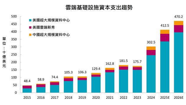 Stanley估計,到2025年,雲端基礎設施的資本支出將增加近1,100億美元,達到4,125億美元。值得注意的是,這些預測尚不包括各國針對AI基礎設施的補助,例如沙烏地阿拉伯1,000億美元的「卓越計畫(Project