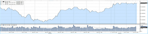 加權股價指數近6個月價量表現:(資料來源:Bloomberg, 截至2023/3/1)