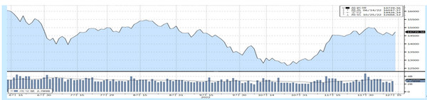 加權股價指數近6個月價量表現:(資料來源:Bloomberg, 截至2022/12/14)