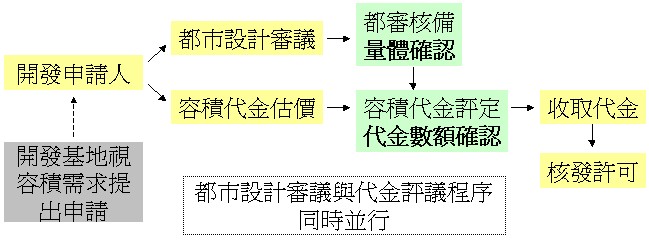 容積移轉若由私人買賣,易受市場資訊不透明、中間人介入等因素,利益全都流入私人口袋,故台北市於2014年3月推動「台北市容積移轉審查許可自治條例(草案)」,以「市價」為計算基礎的容積代金制度,容積選擇標的為捷運站出入口半徑800公尺以內範圍,且要面臨8公尺以上已開闢道路,以信義計畫區、大彎北段等整體開發地區、都市更新地區優先考量。