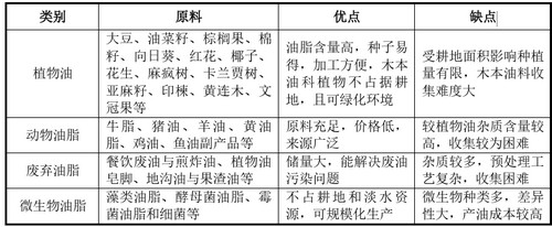 生物柴油原材料主要有植物油、動物油、廢棄油脂以及微生物油脂,如下:
