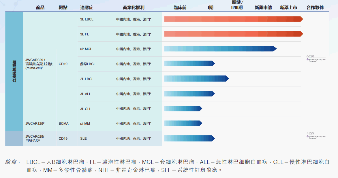 公司建立了專注為血液癌症及實體瘤開發、製造和商業化突破性細胞免疫療法的平台,其主要候選產品relmacabtagene autoleucel(「relma-cel」)為針對復發或難治B細胞淋巴瘤的自體抗CD19 CAR-T療法。