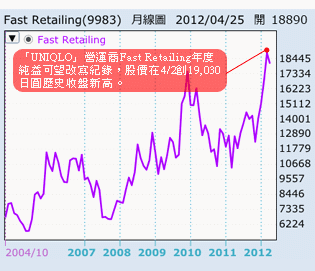 全球知名平價時尚品牌「UNIQLO」營運商日本Fast Retailing 12日於日股收盤後發布新聞稿宣布,因國內外的UNIQLO事業銷售強勁,故今年度(2011年9月-2012年8月)合併營收目標自原先預估的9,370億日圓上修至9,415億日圓,將年增14.8%…繼續閱讀 |