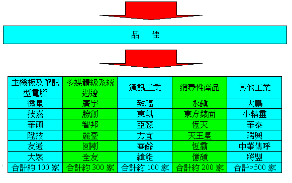 - 為國內專業半導體零件通路商,88年銷售華邦產品約佔營收57%,而87年品佳向華邦進貨金額佔華邦營收的8.5%,今年由於半導體景氣好轉,華邦營收可望達500億元,若品佳代理金額仍以8.5%比例估算,則創造40億以上營收,是品佳88年全年營收,加上新代理SANYO產品線,故預估營收成長四成達58億元,EPS 3.47元。